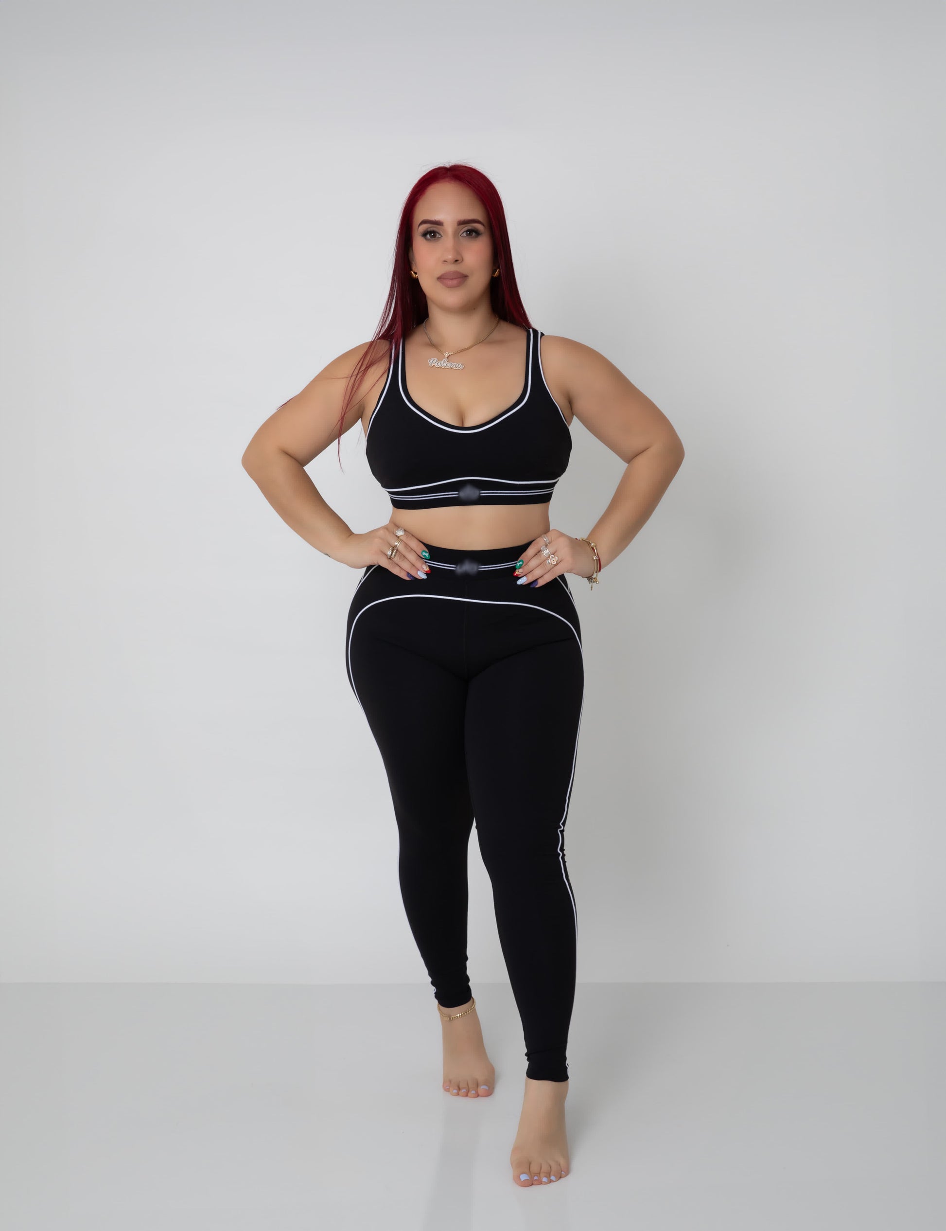 Este conjunto deportivo de mujer incluye un top y un legging en color negro. El diseño elegante y cómodo te permite mantener un estilo activo mientras realizas tus actividades físicas. ¡Cómpralo ahora y siéntete segura y confiada en tus entrenamientos!