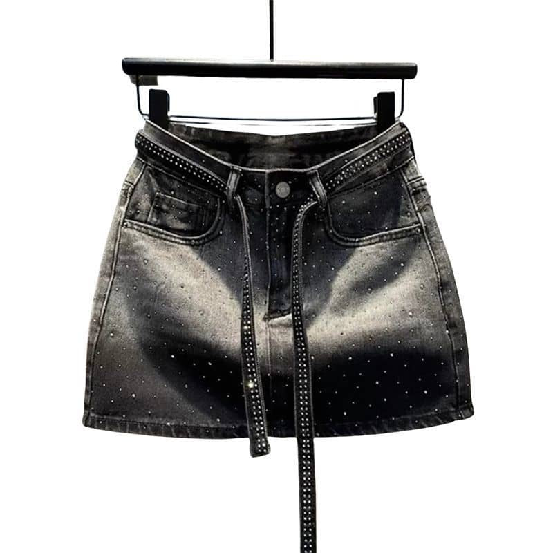 Esta Falda de Mujer es perfecta para cualquier ocasión. Está hecha de mezclilla en dos colores, negro y azul denim, y cuenta con un cinturón brillante que le agrega un toque de elegancia. Además, al ser corta, te mantendrá fresca y cómoda todo el día. ¡Hazte con ella ahora y luce radiante!
